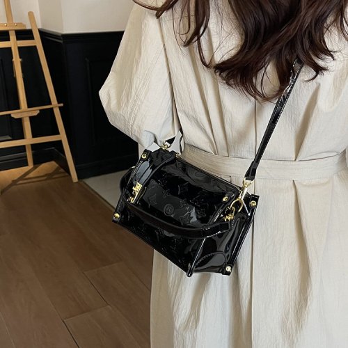 This PU Leather Crossbody Elegant Handbag is a refined Fashion Handbag crafted to complement the dynamic lifestyle of the contemporary woman. As a standout piece in the Bags & Wallets category, this purse features a luxurious patent leather finish in PU, offering the look of high-end gloss without the heavy price tag. The design is elevated with an eye-catching geometric letter pattern, adding a touch of artistic flair to its sleek silhouette. Practicality meets style with a secure zip-around closure that opens to a well-organized polyester-lined interior, spacious enough to hold daily essentials like your phone, wallet, and keys. The bag includes a single, adjustable shoulder strap, allowing you to wear it comfortably as a crossbody for hands-free errands or double it as a short shoulder bag for evenings out. Its durable PU construction resists wear and weather, making it an ideal companion for travel, work, shopping, or daily use across all seasons. Lightweight yet generously proportioned for a 5-inch capacity, this handbag offers the perfect balance of elegance and utility, making it a versatile addition to any wardrobe.