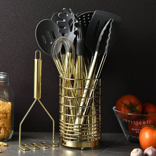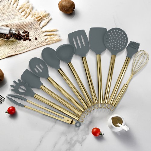 This Stainless Steel – Silicone Kitchen Cooking Utensils Set is a comprehensive collection of Kitchen Tool Sets designed to elevate everyday cooking experiences. As essential Kitchenware & Utensils, this set includes a variety of pieces such as slotted and solid spoons, spatulas, ladles, and scrapers, all thoughtfully crafted to handle everything from flipping eggs to stirring hearty stews. Each tool features a robust stainless steel handle, often finished with an elegant titanium gold plating for a touch of modern style, while the heads are made from high-quality, food-grade silicone. This silicone is exceptionally heat-resistant up to 230°C, ensuring the tools remain safe for use on hot cookware without melting or warping. Its gentle, flexible surface also provides the crucial benefit of being completely safe for non-stick pans, preventing scratches and preserving your expensive cookware coatings. Being soft yet sturdy, the silicone provides a comfortable, confident grip. Furthermore, the entire set is designed for effortless cleanup and is dishwasher safe, meeting the demands of busy home cooks. Backed by certifications for food safety and supported by a manufacturer with over a decade of experience, this utensil set offers a perfect fusion of durability, functionality, and contemporary design, making it a smart, long-lasting addition to any kitchen.